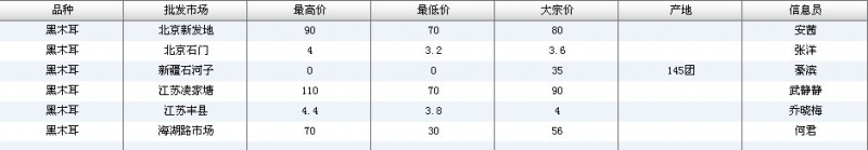 2012.05.29 黑木耳全国批发市场价格行情 单位(元/公斤) 来源:全国农产品批发市场价格信息网