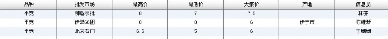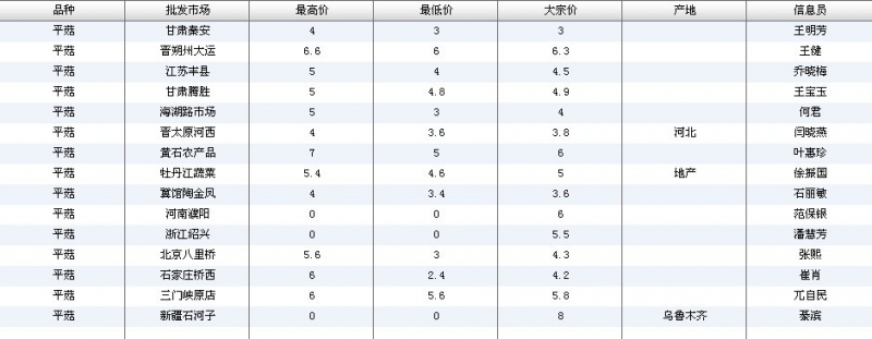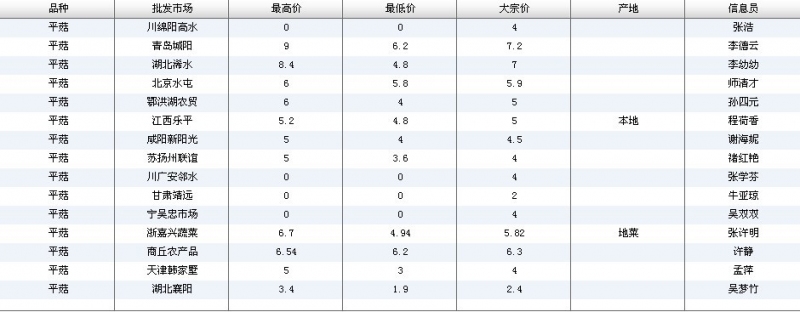 2012.05.30 平菇全国批发市场价格行情 单位(元/公斤) 来源:全国农产品批发市场价格信息网