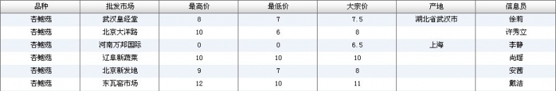 2012.05.31 杏鲍菇全国批发市场价格行情 单位(元/公斤) 来源:全国农产品批发市场价格信息网