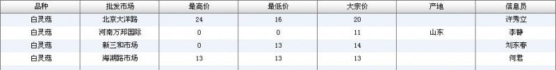 2015年4月3日白灵菇全国批发市场行情