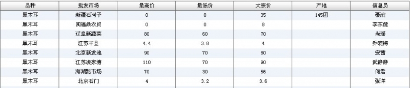 2012.05.31 黑木耳全国批发市场价格行情 单位(元/公斤) 来源:全国农产品批发市场价格信息网