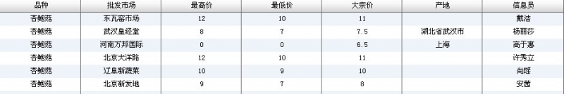 2012.06.01 杏鲍菇全国批发市场价格行情 单位(元/公斤) 来源:全国农产品批发市场价格信息网