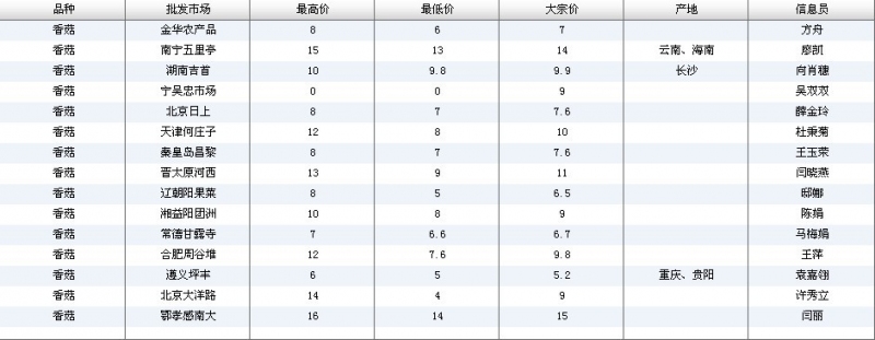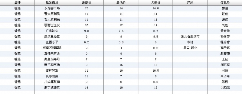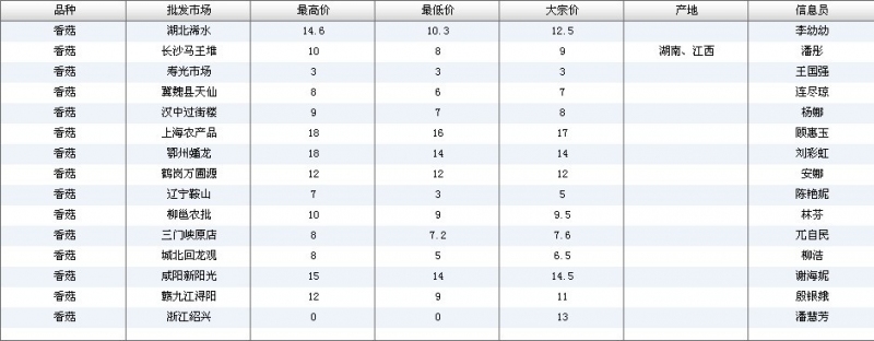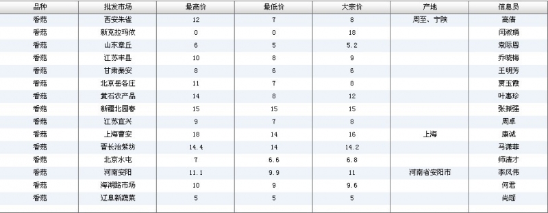 2012.06.01 香菇全国批发市场价格行情 单位(元/公斤) 来源:全国农产品批发市场价格信息网