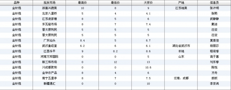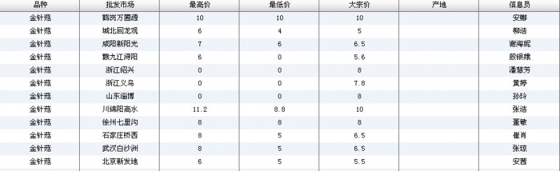 2012.06.01 金针菇全国批发市场价格行情 单位(元/公斤) 来源:全国农产品批发市场价格信息网