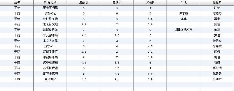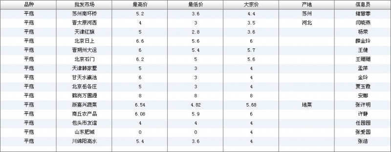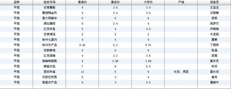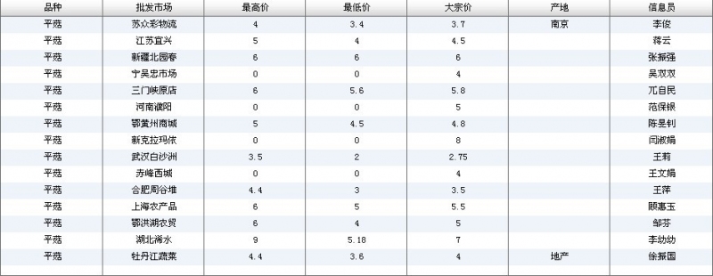2012.06.04 平菇全国批发市场价格行情 单位(元/公斤) 来源:全国农产品批发市场价格信息网