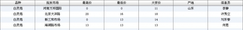2015年4月3日白灵菇全国批发市场行情