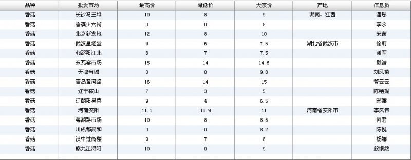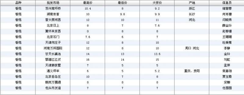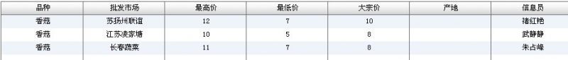 2012.06.04 香菇全国批发市场价格行情 单位(元/公斤) 来源:全国农产品批发市场价格信息网