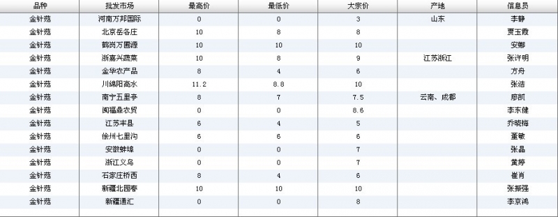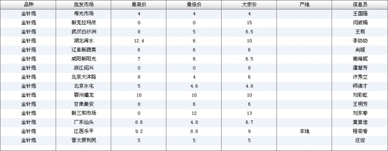 2012.06.04 金针菇全国批发市场价格行情 单位(元/公斤) 来源:全国农产品批发市场价格信息网