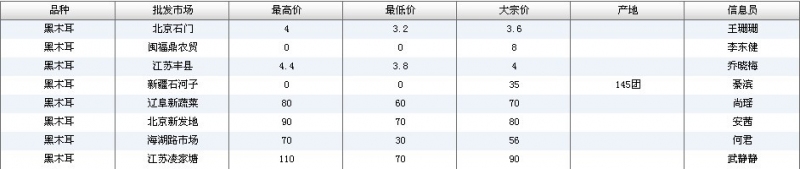 2022年3月18日黑木耳全国批发市场行情