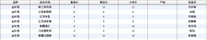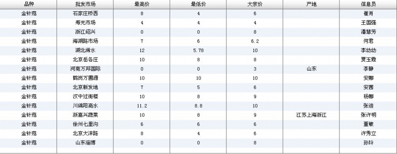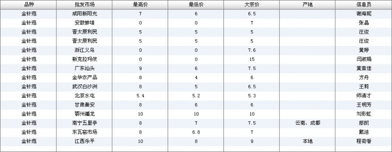2012.06.05 金针菇全国批发市场价格行情 单位(元/公斤) 来源:全国农产品批发市场价格信息网