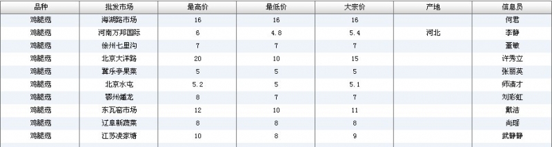 2012.06.05 鸡腿菇全国批发市场价格行情