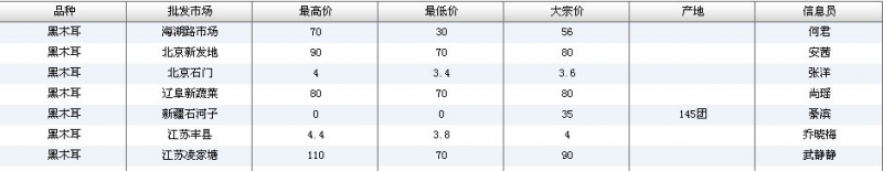 2012.06.05 黑木耳全国批发市场价格行情 单位(元/公斤) 来源:全国农产品批发市场价格信息网