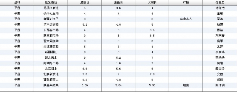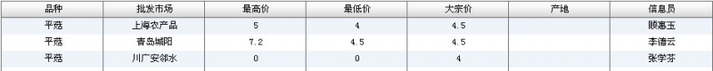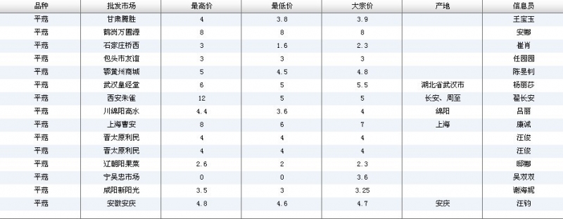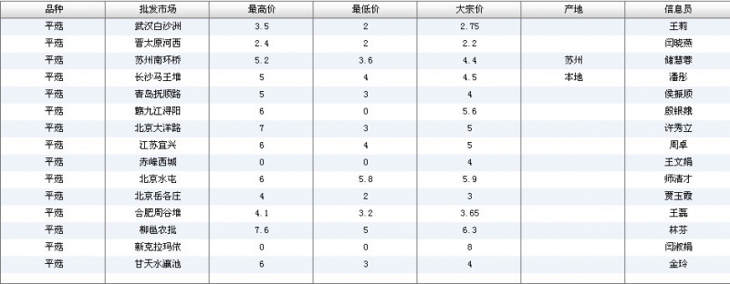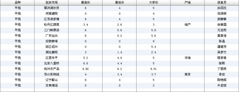 2012.06.07 平菇全国批发市场价格行情 单位(元/公斤) 来源:全国农产品批发市场价格信息网