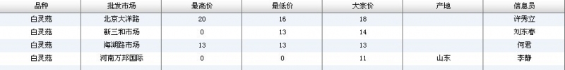 2012.06.07 白灵菇全国批发市场价格行情 单位(元/公斤) 来源:全国农产品批发市场价格信息网