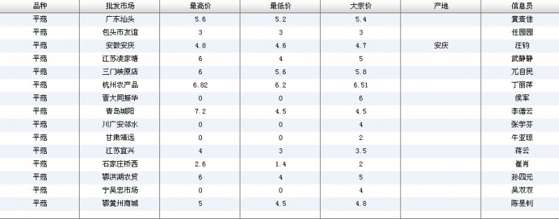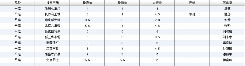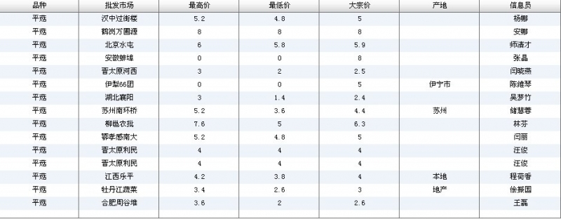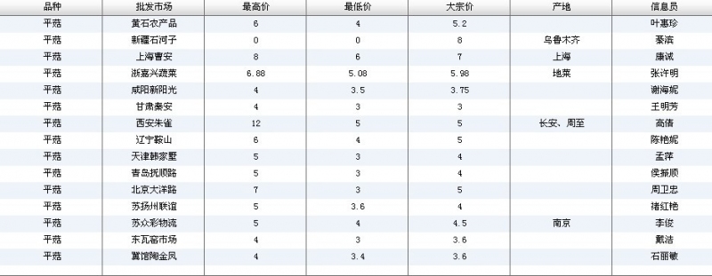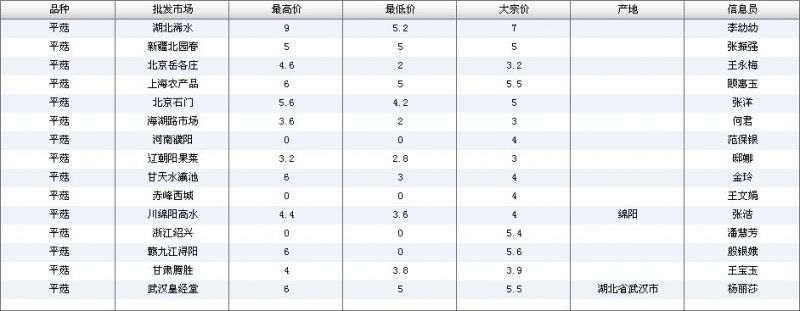 2012.06.08 平菇全国批发市场价格行情 单位(元/公斤) 来源:全国农产品批发市场价格信息网