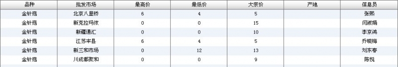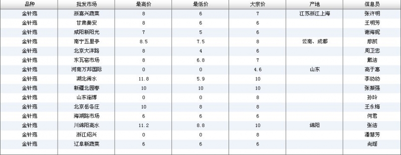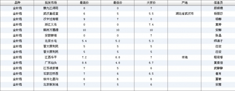 2012.06.08 金针菇全国批发市场价格行情 单位(元/公斤) 来源:全国农产品批发市场价格信息网