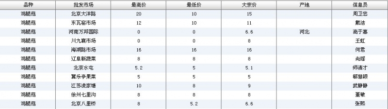 2012.06.08 鸡腿菇全国批发市场价格行情 单位(元/公斤) 来源:全国农产品批发市场价格信息网