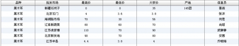 2012.06.08 黑木耳全国批发市场价格行情 单位(元/公斤) 来源:全国农产品批发市场价格信息网