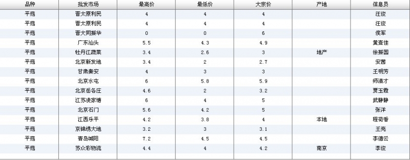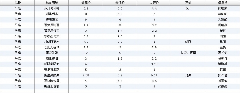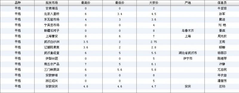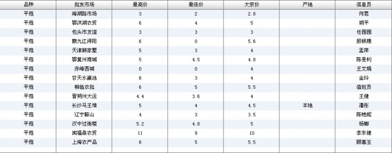 2012.06.09 平菇全国批发市场价格行情 单位(元/公斤) 来源:全国农产品批发市场价格信息网