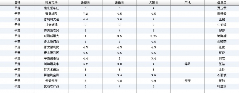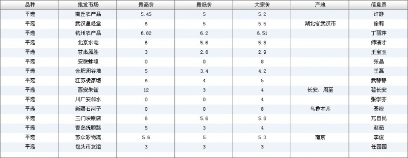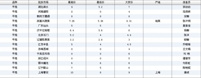 2012.06.12 平菇全国批发市场价格行情 单位(元/公斤) 来源:全国农产品批发市场价格信息网