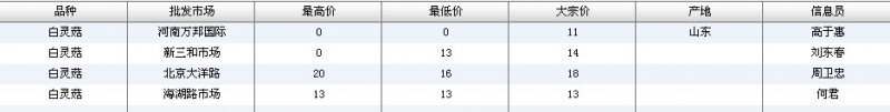 2012.06.12 白灵菇全国批发市场价格行情 单位(元/公斤) 来源:全国农产品批发市场价格信息网