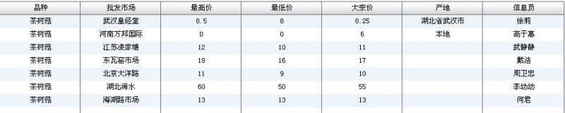 2012.06.12 茶树菇全国批发市场价格行情 单位(元/公斤) 来源:全国农产品批发市场价格信息网