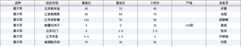 2012.06.12 黑木耳全国批发市场价格行情 单位(元/公斤) 来源:全国农产品批发市场价格信息网