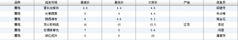 2012.06.13 蘑菇全国批发市场价格行情 单位(元/公斤) 来源:全国农产品批发市场价格信息网