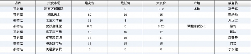 2012.06.13 茶树菇全国批发市场价格行情 单位(元/公斤) 来源:全国农产品批发市场价格信息网