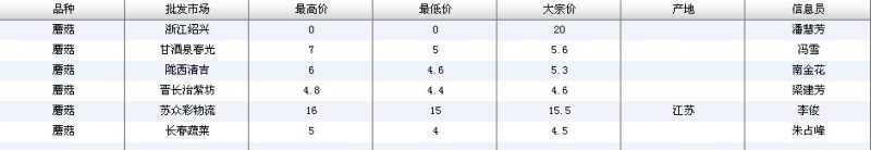 2012.06.14 蘑菇全国批发市场价格行情 单位(元/公斤) 来源:全国农产品批发市场价格信息网