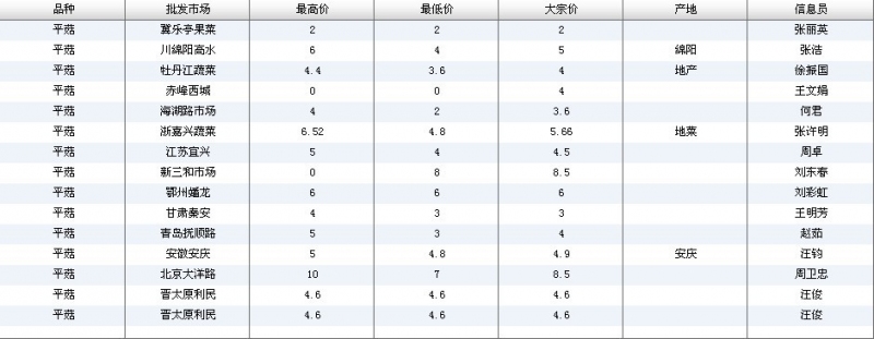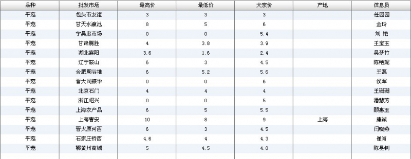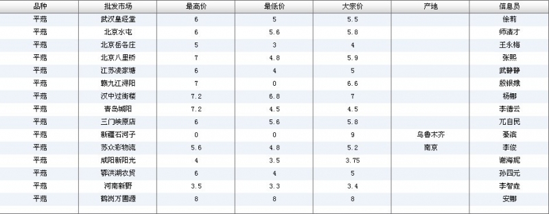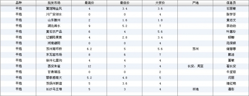 2012.06.14 平菇全国批发市场价格行情 单位(元/公斤) 来源:全国农产品批发市场价格信息网