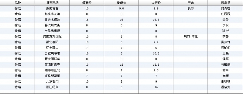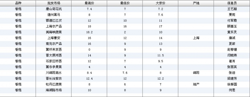2012.06.14 香菇全国批发市场价格行情 单位(元/公斤) 来源:全国农产品批发市场价格信息网