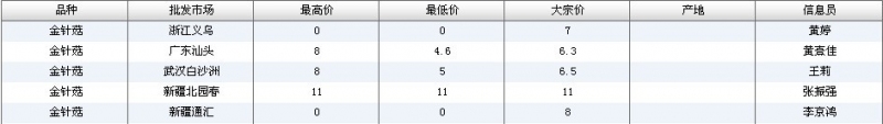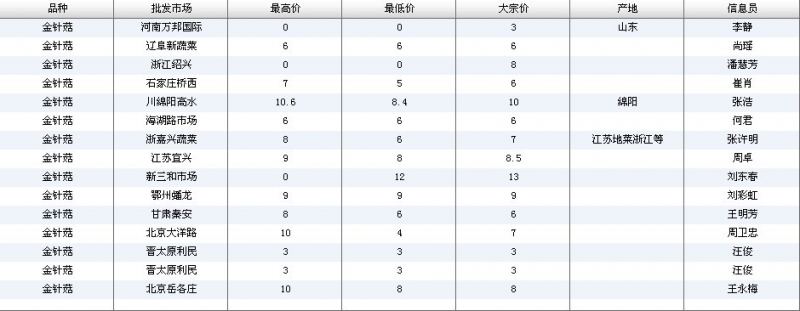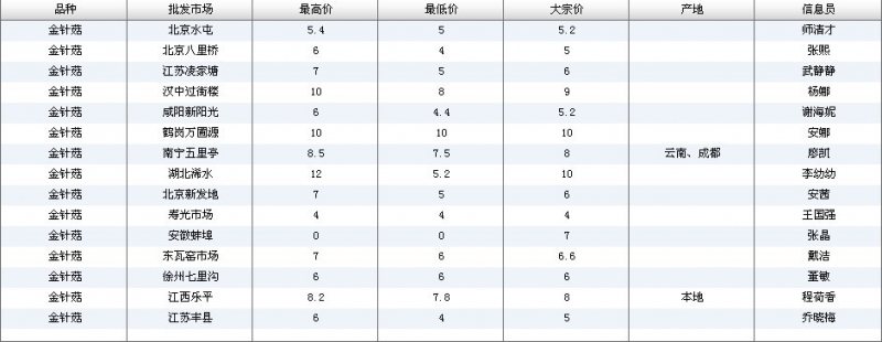 2012.06.14 金针菇全国批发市场价格行情 单位(元/公斤) 来源:全国农产品批发市场价格信息网