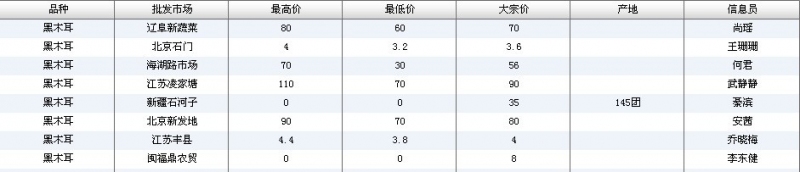 2012.06.14 黑木耳全国批发市场价格行情 单位(元/公斤) 来源:全国农产品批发市场价格信息网