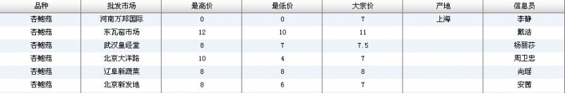 2012.06.15 杏鲍菇全国批发市场价格行情 单位(元/公斤) 来源:全国农产品批发市场价格信息网