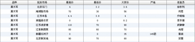 2012.06.15 黑木耳全国批发市场价格行情 单位(元/公斤) 来源:全国农产品批发市场价格信息网