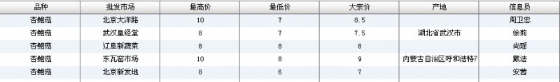 2012.06.18 杏鲍菇全国批发市场价格行情 单位(元/公斤) 来源:全国农产品批发市场价格信息网