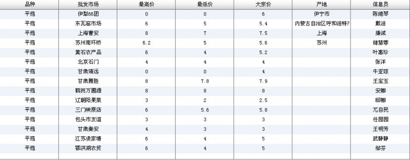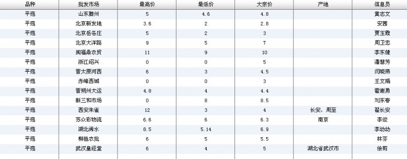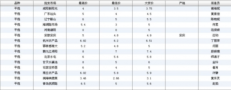 2012.06.19 平菇全国批发市场价格行情 单位(元/公斤) 来源:全国农产品批发市场价格信息网