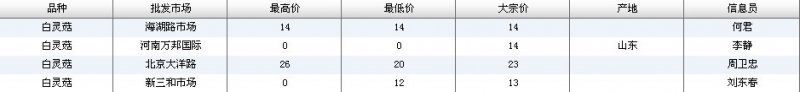 2012.06.19 白灵菇全国批发市场价格行情 单位(元/公斤) 来源:全国农产品批发市场价格信息网