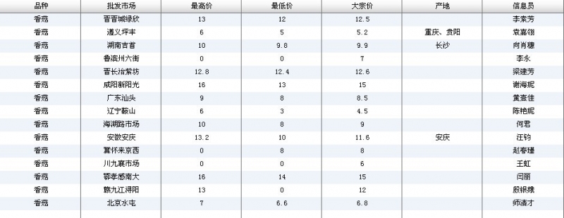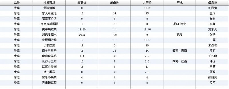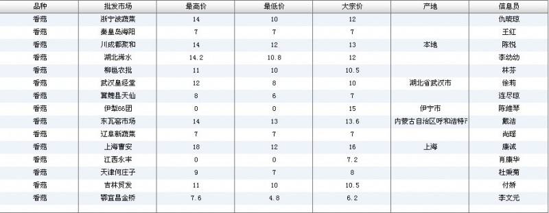 2012.06.19 香菇全国批发市场价格行情