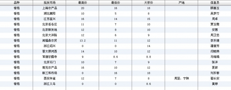 2012.06.19 香菇全国批发市场价格行情 单位(元/公斤) 来源:全国农产品批发市场价格信息网