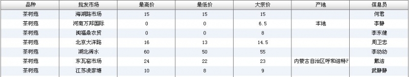 2012.06.19 茶树菇全国批发市场价格行情 单位(元/公斤) 来源:全国农产品批发市场价格信息网