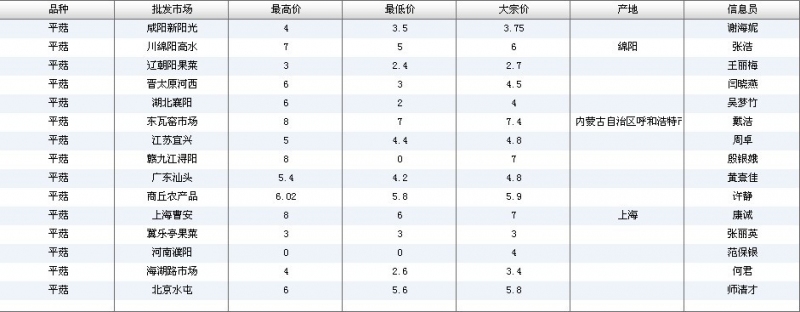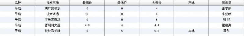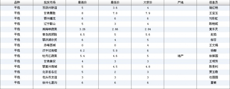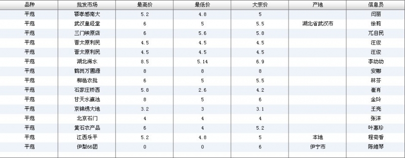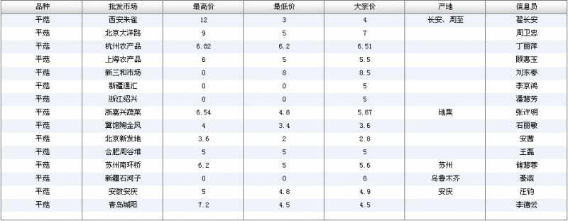 2012.06.20 平菇全国批发市场价格行情 单位(元/公斤) 来源:全国农产品批发市场价格信息网