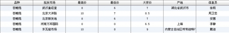 2012.06.20 杏鲍菇全国批发市场价格行情 单位(元/公斤) 来源:全国农产品批发市场价格信息网
