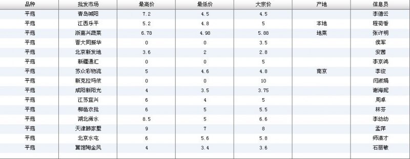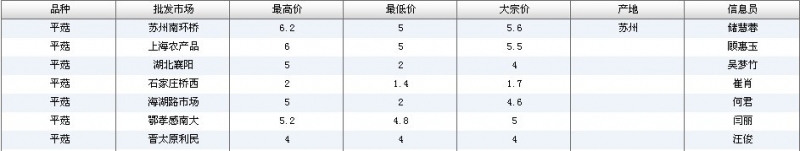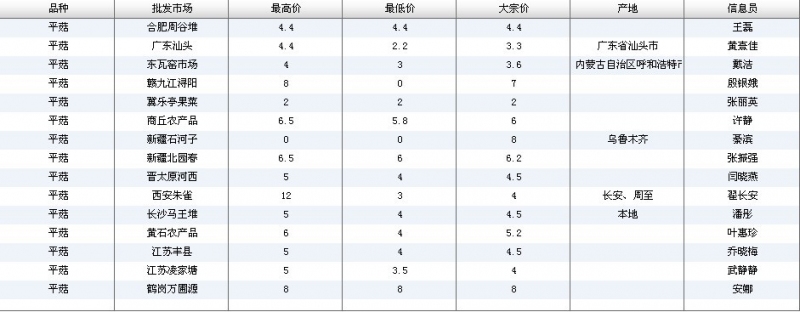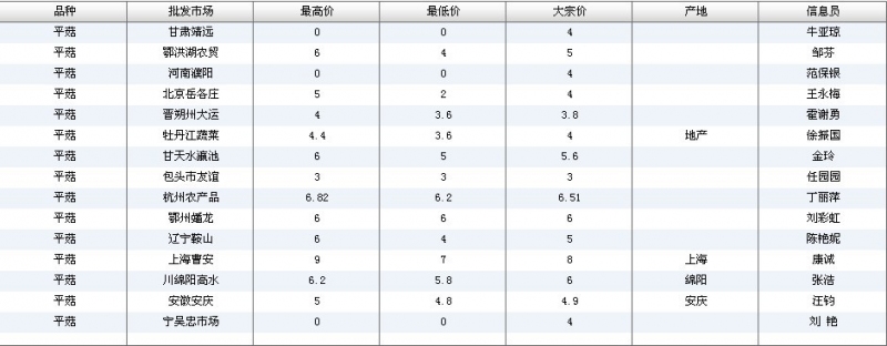 2012.06.25 平菇全国批发市场价格行情 单位(元/公斤) 来源:全国农产品批发市场价格信息网