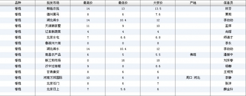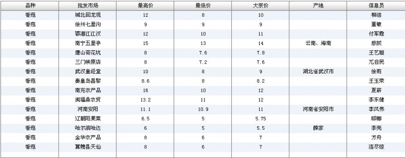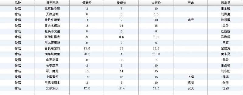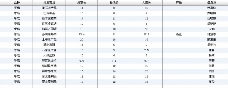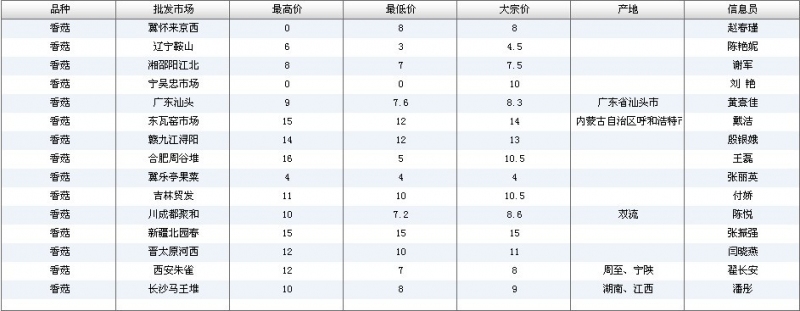 2012.06.25 香菇全国批发市场价格行情 单位(元/公斤) 来源:全国农产品批发市场价格信息网