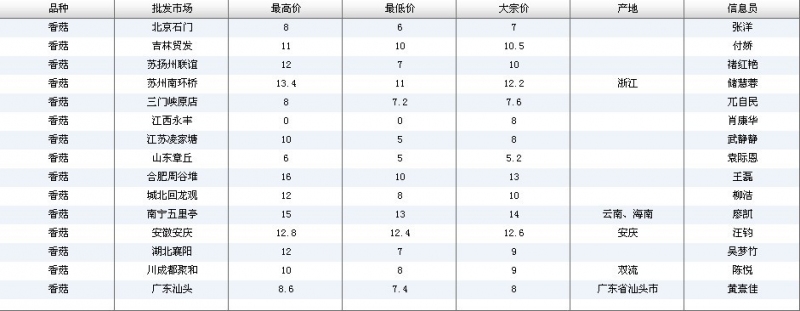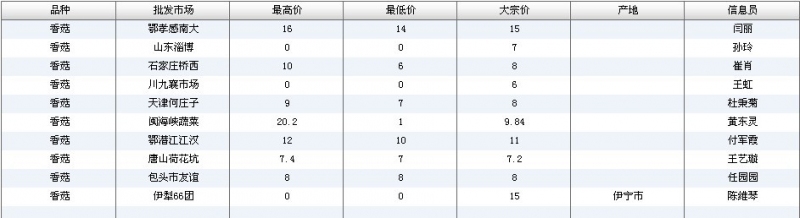 2012.06.26 香菇全国批发市场价格行情 单位(元/公斤) 来源:全国农产品批发市场价格信息网
