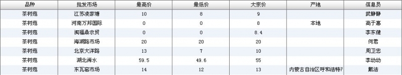 2024年3月18日全国主要批发市场茶树菇价格行情