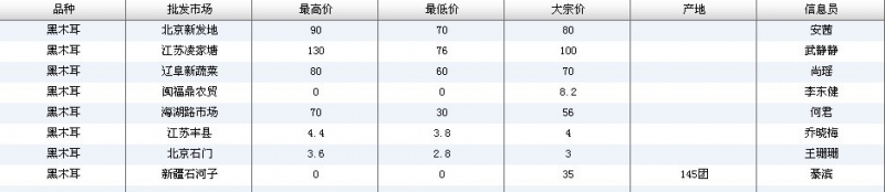 2012.06.28 黑木耳全国批发市场价格行情 单位(元/公斤) 来源:全国农产品批发市场价格信息网