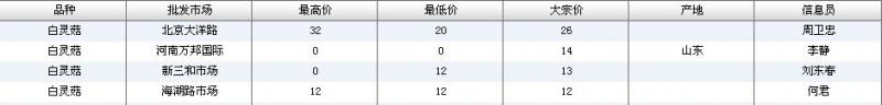 2012.06.29 白灵菇全国批发市场价格行情 单位(元/公斤) 来源:全国农产品批发市场价格信息网